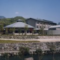 山を背にするようにして建つ秘湯「夷谷温泉」は、絶景が楽しめる景勝地にあります。